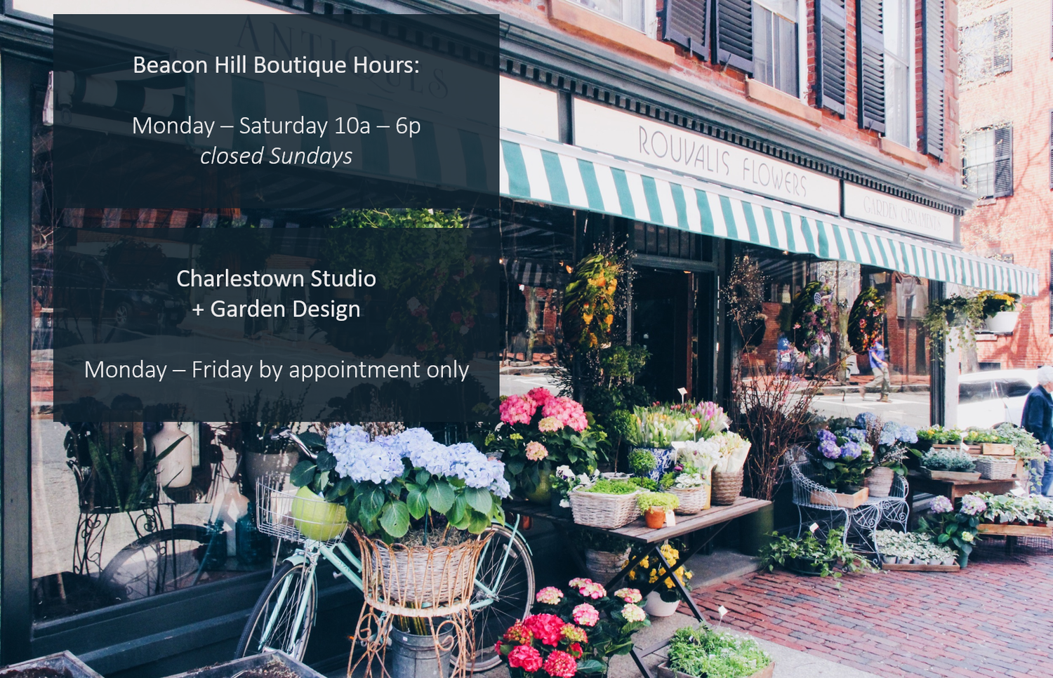 - Location Hours For Rouvalis Flowers Gardens In The Greater Boston Area Rouvalis Flowers Gardens Boston S Luxury Florist Offering Flower Delivery Plants Garden Design And Weekly Floral . 40 Restaurants Open On Thanksgiving This Year.