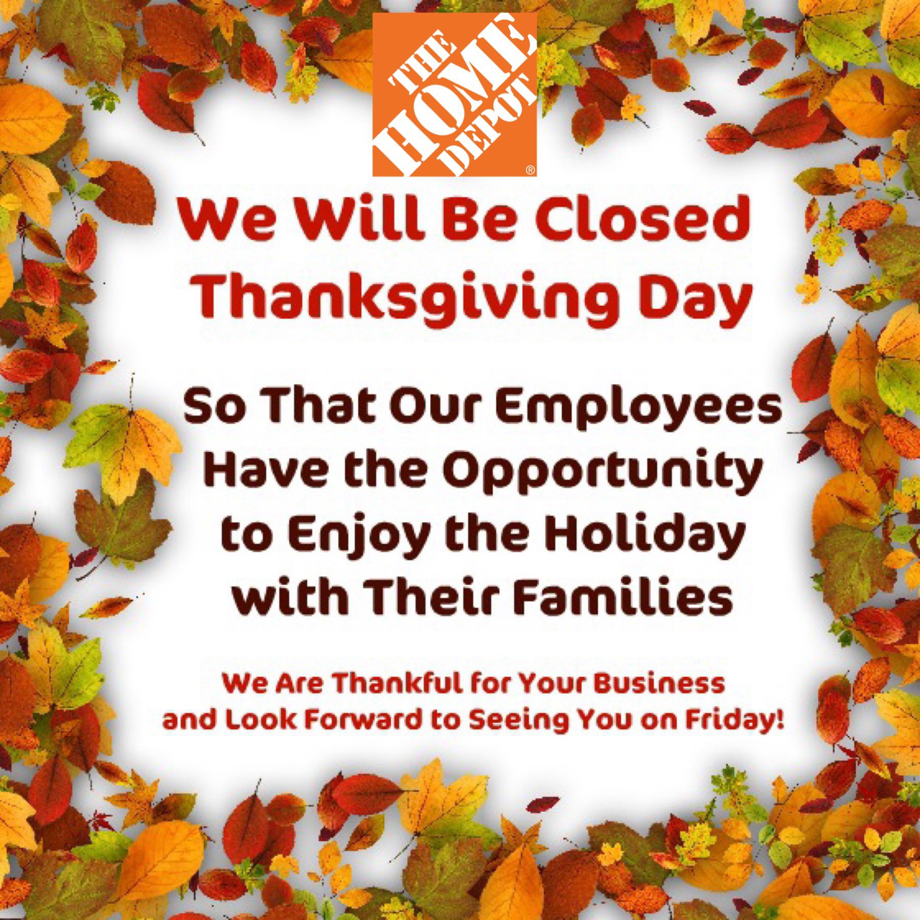 Home Depot Hours Thanksgiving Day Indeed recently has been hunted by consumers around us, perhaps one of you personally. People now are accustomed to using the net in gadgets to view video and image data for inspiration, and according to the title of this article I will talk about about Home Depot Hours Thanksgiving Day.