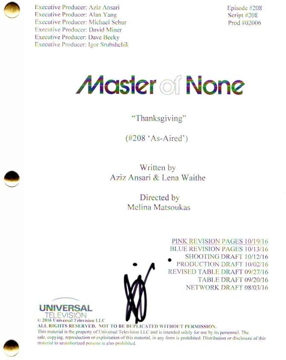 - Master Of None 208 Thanksgiving 2017 Script Slug - Family, Food And Free Time.