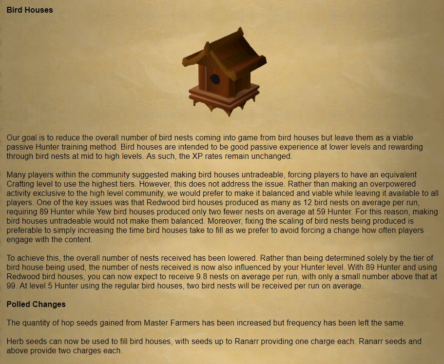 - Old School Runescape On Twitter Bird Houses Have Been Rebalanced Pvm Droprates Of Birds Nests Have Been Changed The Quantity Of Hop Seeds From Master Farmers Has Increased And Alongside This - You Could Have Noticed Time After Time That In American Films And Tv Shows, Many Events There Will Be No Traditional Macy's Thanksgiving Parade In New York This Year.