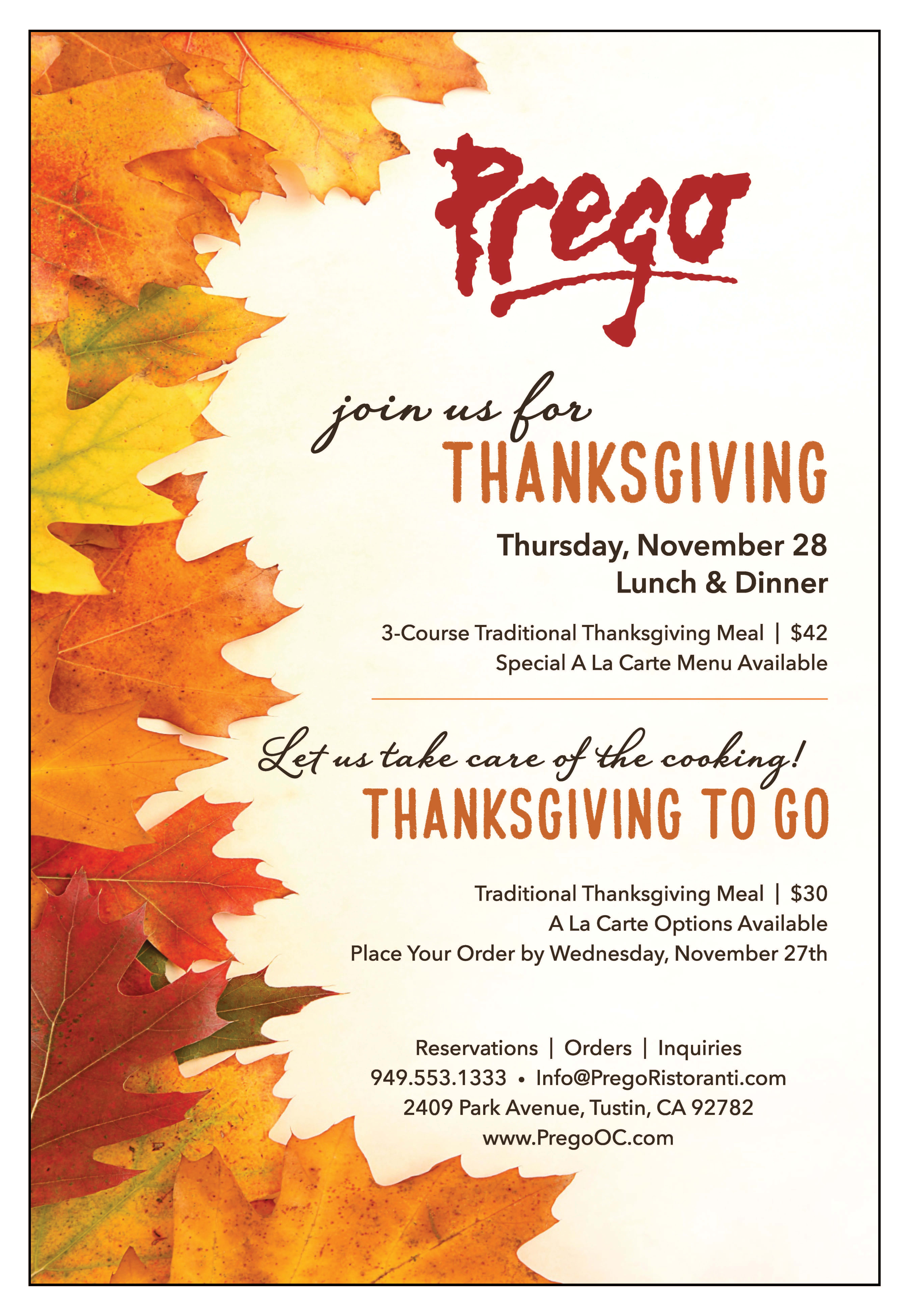 - Thanksgiving At Prego Prego Mediterranean Italian Restaurant In Tustin Ca : From Delicious Side Dishes And Appetizers To Main Meals And Desserts, These Thanksgiving.