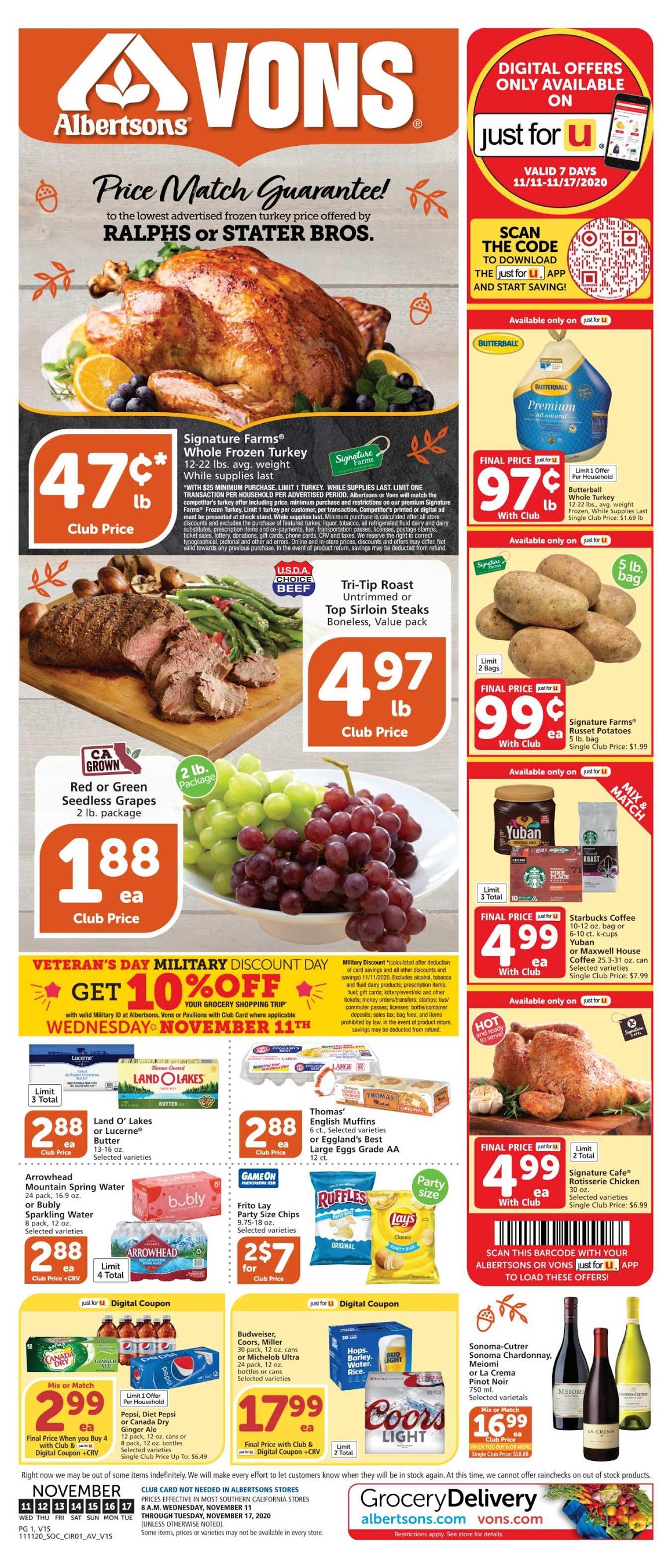 - Vons Weekly Ad General Grocery Weekly Deals All Products Weeklyads2 : Thanksgiving Is A Federal Holiday In The United States, Celebrated On The Fourth Thursday Of November.